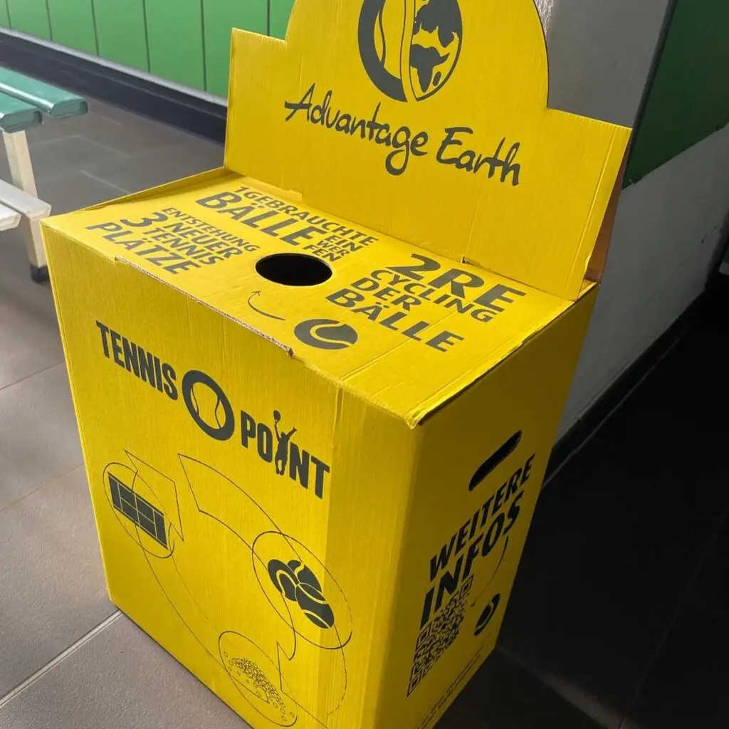 Bereits seit 2021 stehen im Clubhaus Sammelboxen für alte Tennisbälle. 300 Bälle passen in jede Box, prall gefüllt werden sie per Post verschickt und die Bälle so einer nachhaltigen Wiederverwertung zugeführt und recycelt. Das daraus entstandene Gummi wird innerhalb des „Tennis-Ökosystems“ wiederverwendet (z.B. in Tennisplätzen). Mehr als 2400 alte BTTC-Bälle landen dadurch jedes Jahr anstatt im Restmüll (oder auf der Wiese) in der Box und werden so dem Recycling zugeführt.
