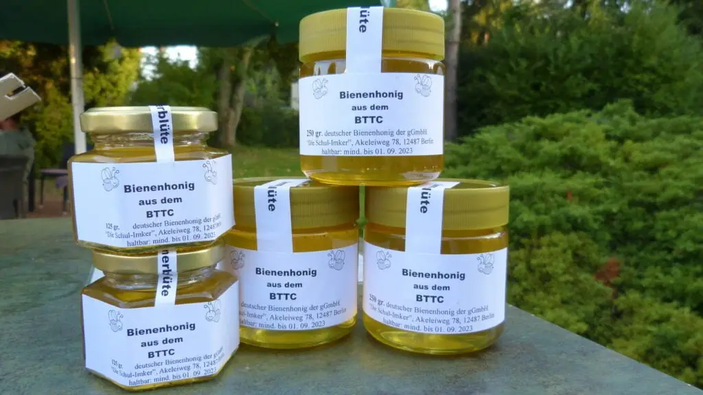 Im Mai 2020 wurde von den gemeinnützigen Schul-Imkern bei uns im Verein auf der Wiese hinter Platz 11 ein Bienenstock aufgestellt. Die Biene trägt nicht nur durch Bestäubung zur Biodiversität bei, sondern bildet mit ihrer hohen Biomasse auch einen wichtigen Teil der Nahrungskette für insektenfressende Tiere. Seit 2021 wird in unserer Gastronomie der vereinseigene Honig verkauft.