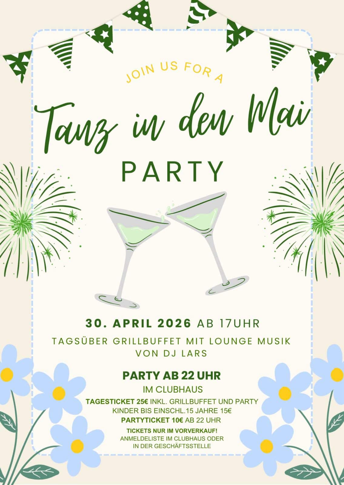 Endlich ist es soweit: Unsere legendäre Tanz in den Mai Party am 30. April 2026 steht vor der Tür. 🎉
